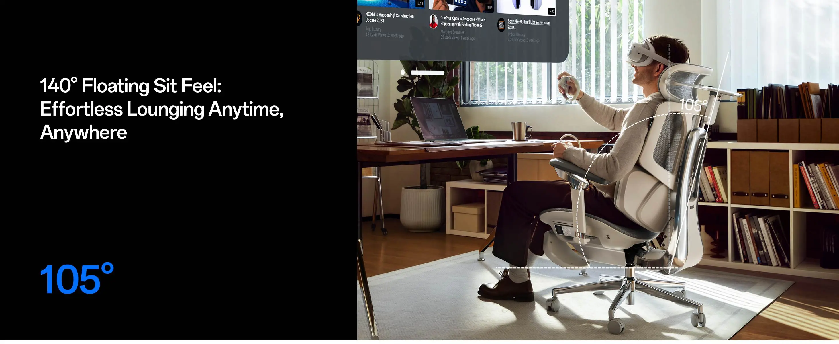 - 𝟕𝟐𝟎° 𝐎𝐦𝐧𝐢𝐝𝐢𝐫𝐞𝐜𝐭𝐢𝐨𝐧𝐚𝐥 𝐀𝐫𝐦𝐫𝐞𝐬𝐭𝐬 & 𝟏𝟒𝟎° 𝐑𝐞𝐜𝐥𝐢𝐧𝐞: Dual-axis armrests (360° rotation + 110mm extension + 50mm lift) sync with 140° reclining angle, seamlessly switching between work, gaming, and nap modes.
