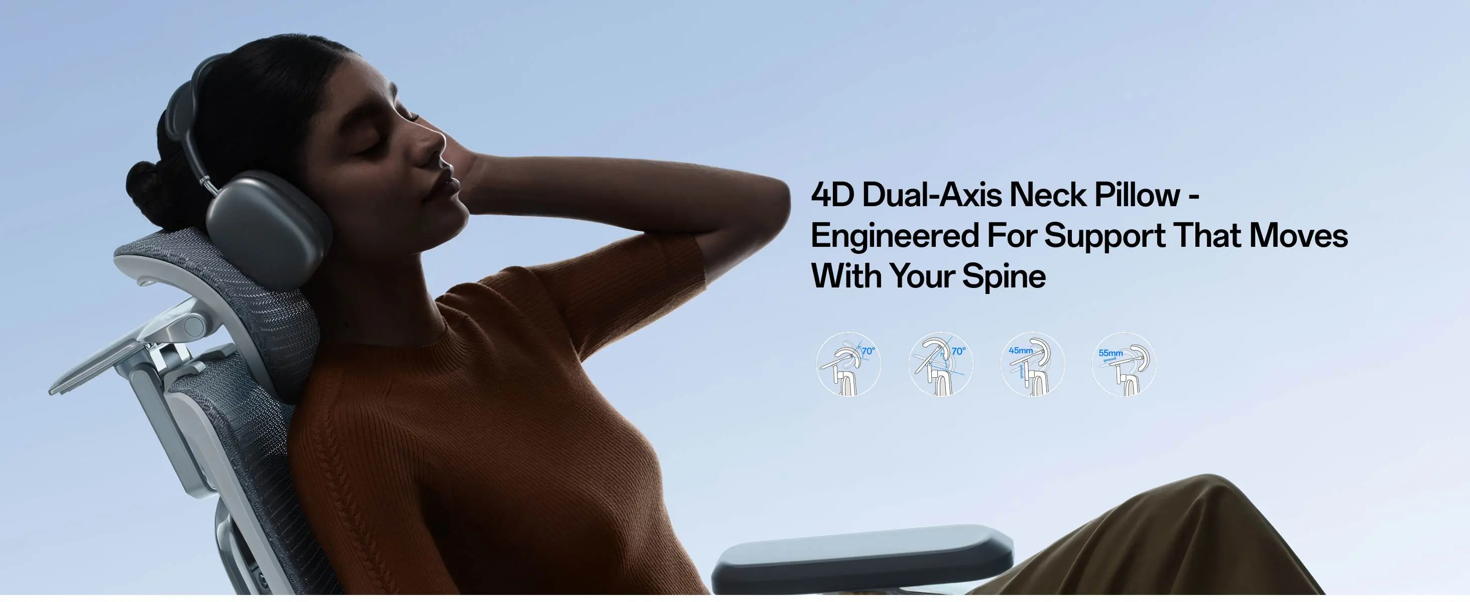 - 𝟒𝐃 𝐄𝐫𝐠𝐨𝐧𝐨𝐦𝐢𝐜 𝐇𝐞𝐚𝐝𝐫𝐞𝐬𝐭 𝐰𝐢𝐭𝐡 𝐅𝐮𝐥𝐥 𝐀𝐝𝐣𝐮𝐬𝐭𝐚𝐛𝐢𝐥𝐢𝐭𝐲: 70° rotation, 55mm sliding, 45mm height adjustment, and 70° flip design adapt to any posture, maintaining natural neck alignment during work or relaxation.
