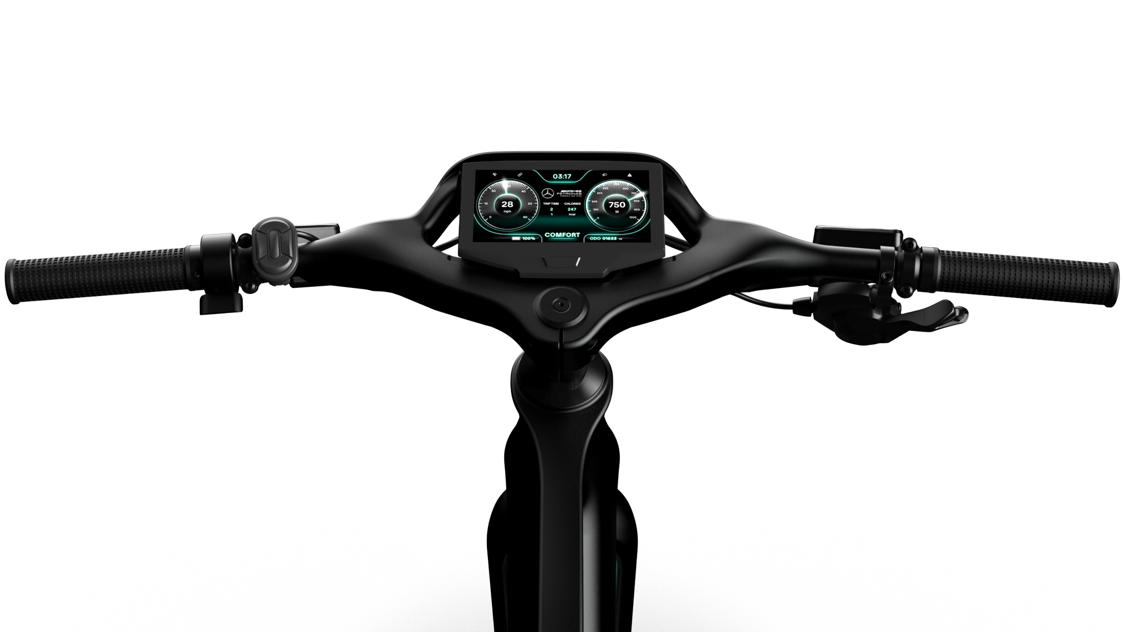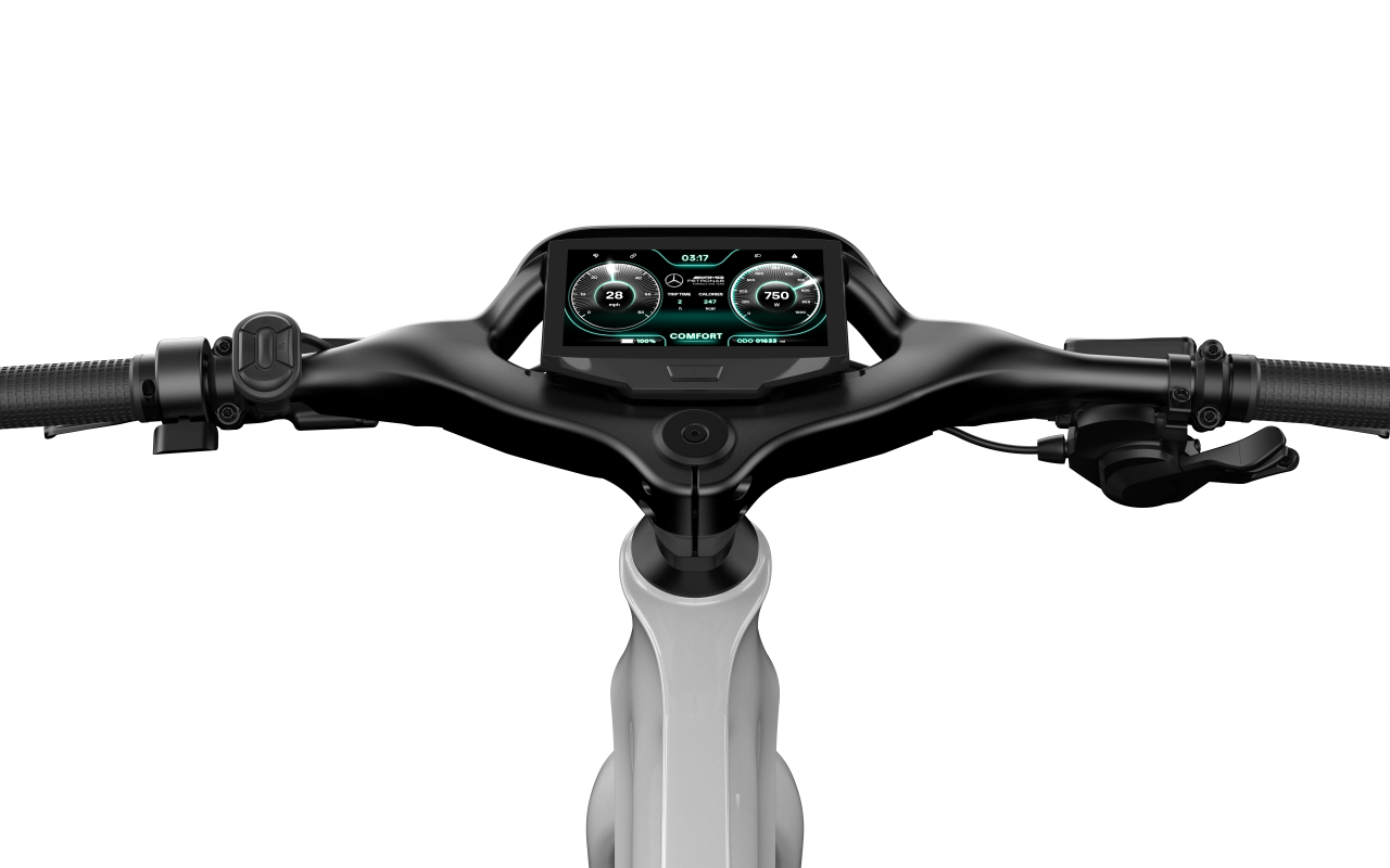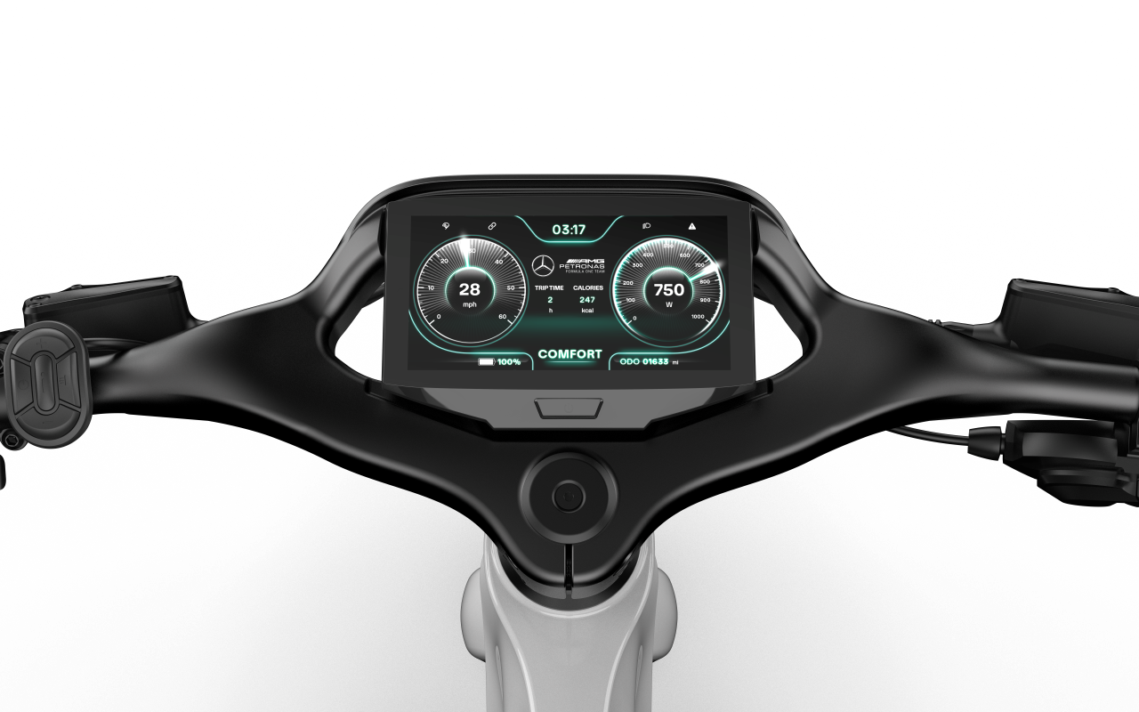 The bike's integrated LED head and tail lights sync automatically with the smart helmet’s head and tail lights.